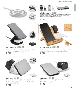 Skládací nabíjecí stanice 3v1 z ABS. 3 nabíjecí plochy. Vstup: 2v1 typ C a typ A.   Skládací nabíjecí stanice 2v1 z ABS. Součástí je bezdrátová nabíječka 15W
