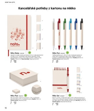 kartonů od mléka a 30 % z recyklovaného papíru. Rozměry 7,8x7,6 cm mléka a 30 % recyklovaného papíru). Kroužková vazba. Odpovídající kuličkové