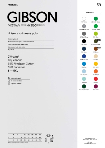 B 50 53 56 59 63 66 69 72 85% Cotton - 15% Viscose