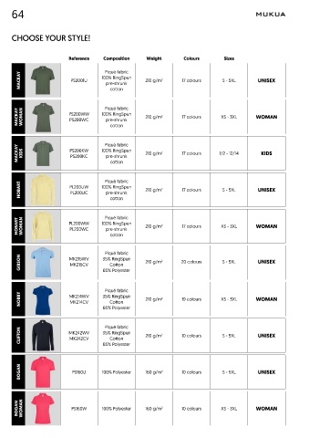 Reference Composition Weight Colours Sizes