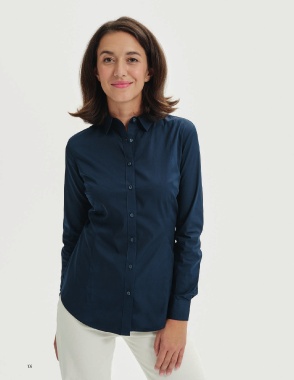 •nakladané náprsné vrecko • dámska: zúžený strih s bočnými švami • pásové a prsné záševky • dlhé rukávy so šikmou manžetou na 2 gombíčky