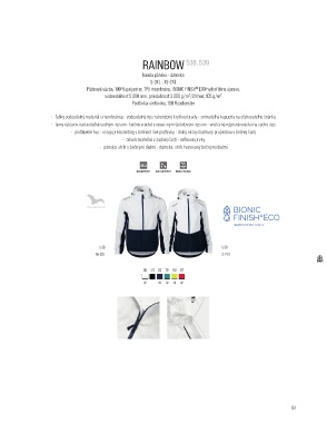 micro fleece, 96 % polyester, 4 % elastan, vodeodolnosť 5 000 mm, priedušnosť 600 g/m/24 hod, 280 g/m 2 vodeodolnosť 5 000 mm, priedušnosť 3 000 g/m/24 hod, 105 g/m