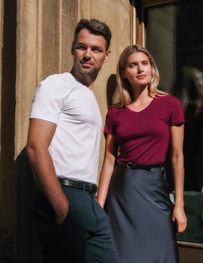 •úzky lem priekrčníka z rebrového úpletu 1:1 s 5 % elastanu • kontrastné prvky