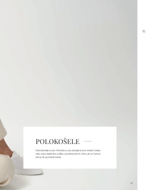 POLOKOŠELE Polokošeľa nielen na tenis. Polokošeľa sa stala základným prvkom mnohých šatníkov vďaka svojmu elegantnému vzhľadu a vysokému komfortu. Hodí sa ako pre športové aktivity, tak aj pre bežné nosenie. 80 81