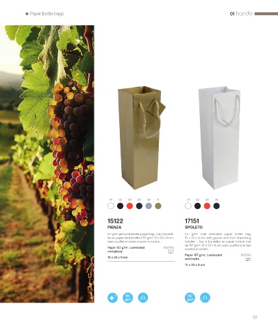 157 g/m² glossy laminated paper bag. • Sac à bouteil- 157 g/m² matt laminated paper bottle bag,