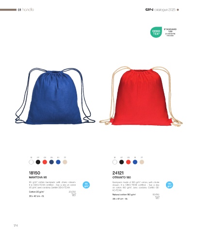 95 g/m² cotton backpack with choke closure. 95 Backpack made of 180 g/m² cotton, with choke 180