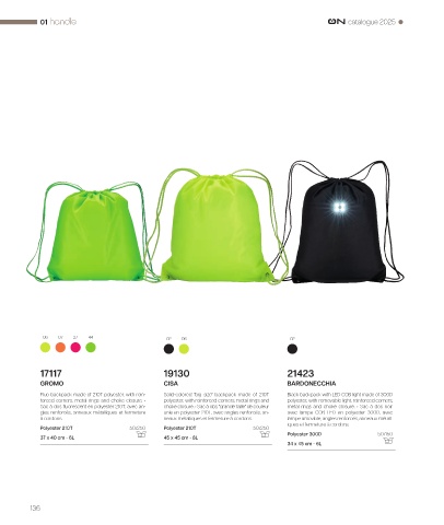 forced corners, metal rings and choke closure. • polyester, with reinforced corners, metal rings and polyester, with removable light, reinforced corners,