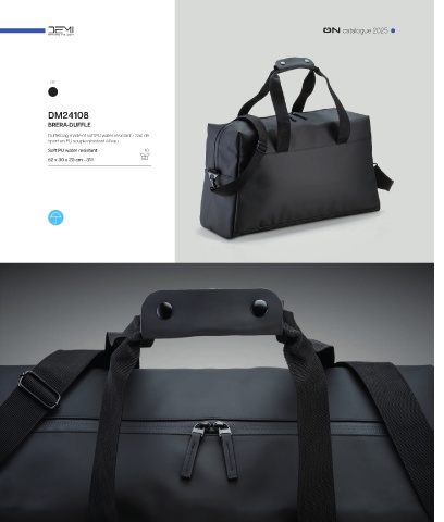 catalogue 2025 02 DM24108 BRERA•DUFFLE Duffel bag made of soft PU water resistant. • Sac de sport en PU souple résistant à l’eau. Soft PU water resistant 10 52 x 30 x 20 cm - 31 l 196