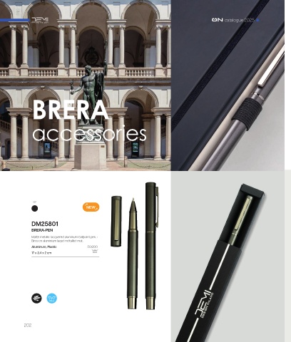 catalogue 2025 BRERA accessories 02 NEW DM25801 BRERA•PEN Matte metallic lacquered aluminum ballpoint pen. • Biros en aluminium laqué métallisé mat. Aluminum, Plastic 50/200 17 x 3.4 x 2 cm 202