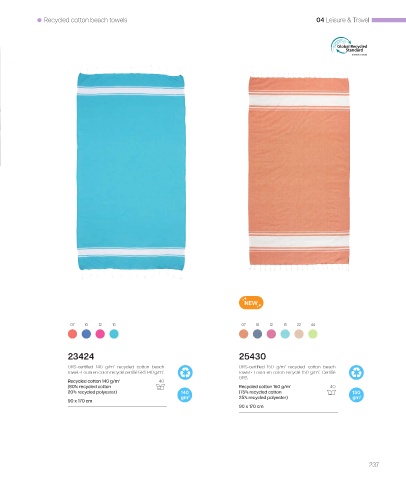 GRS-certified 140 g/m² recycled cotton beach GRS-certified 150 g/m² recycled cotton beach