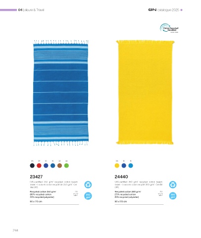 GRS-certified 350 g/m² recycled cotton beach GRS-certified 360 g/m² recycled cotton beach