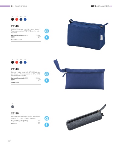 R-PET felt pouch with zipper closure. • Étui/trousse