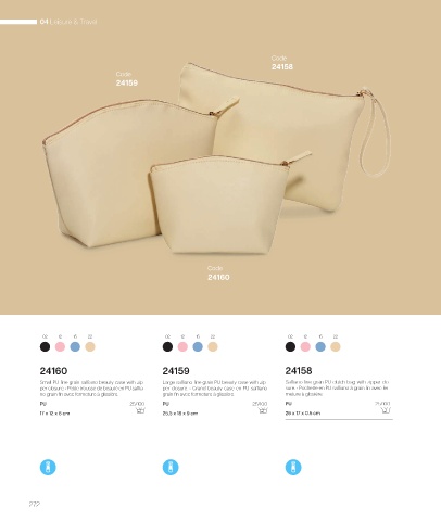 per closure. • Petite trousse de beauté en PU saffia- per closure. • Grand beauty case en PU saffiano sure. • Pochette en PU saffiano à grain fin avec fer-