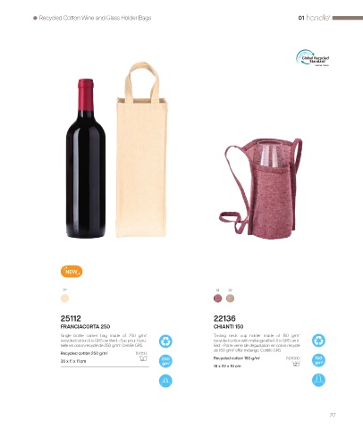 recycled cotton. It is GRS certified. • Sac pour 1 bou- recycled cotton with mélange effect. It is GRS certi-