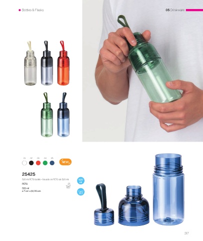 Bottles & Flasks 05 Drinkware 01 02 03 04 05 NEW 25425 520 ml PETG bottle • Gourde en PETG de 520 ml PETG 25 520 ml ø 7 cm x (h) 20 cm 317