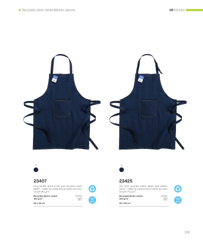 Long kitchen apron in 180 g/m recycled cotton 220 g/m recycled cotton denim long kitchen