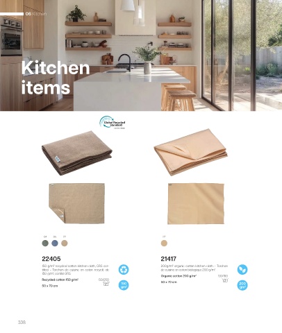 150 g/m recycled cotton kitchen cloth, GRS cer- 200g/m organic cotton kitchen cloth. • Torchon