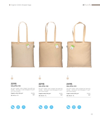 handles. • Tote bag en coton biologique 100 g/m²   handles. • Tote bag en coton biologique 190 g/m²   handles. • Tote bag en coton biologique 220 g/m²