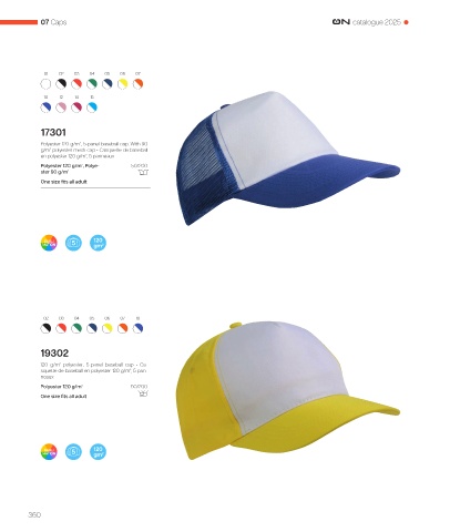 120 g/m² polyester, 5-panel baseball cap • Ca-