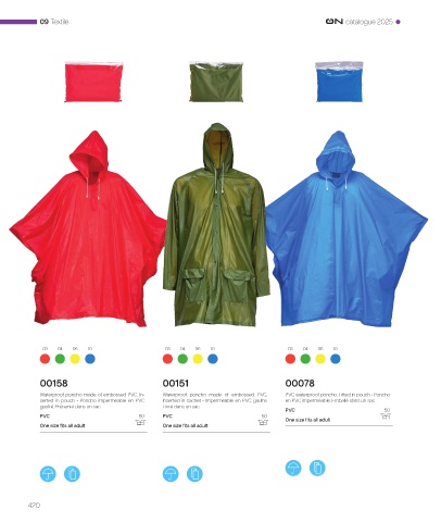 serted in pouch • Poncho imperméable en PVC Inserted in sachet • Imperméable en PVC gaufré. en PVC imperméable. Emballé dans un sac