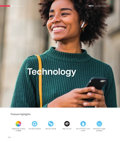 10 Technology catalogue 2025 Technology Feature Highlights: Sublimation printing Recycled material Natural material Black ink pen Pen with tip for touch Delivered in single available screen package 424