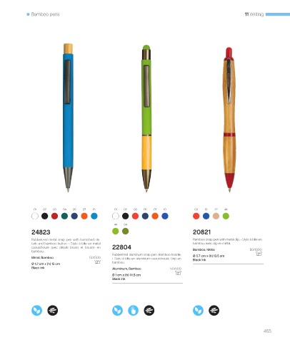 Rubberized aluminum snap pen. Bamboo handle. Ø 0.7 cm x (h) 13.5 cm