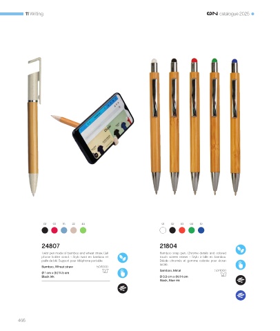 phone holder stand. • Stylo twist en bambou et touch screen eraser. • Stylo à bille en bambou.