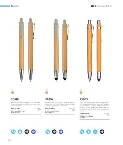 details. • Stylo à bille en bambou avec clip en métal. screen grommet. • Stylo à bille en bambou. Détails screen eraser. Metal clip and black refill. Packaged