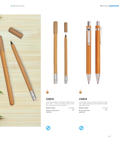 and eraser. • Crayon en bambou longue durée clip. • Crayon en bambou à action rapide et durable
