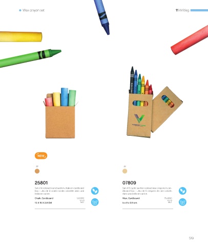 box. • Jeu de 4 craies rondes colorées dans une dboard box. • Jeu de 6 crayons de cire colorés