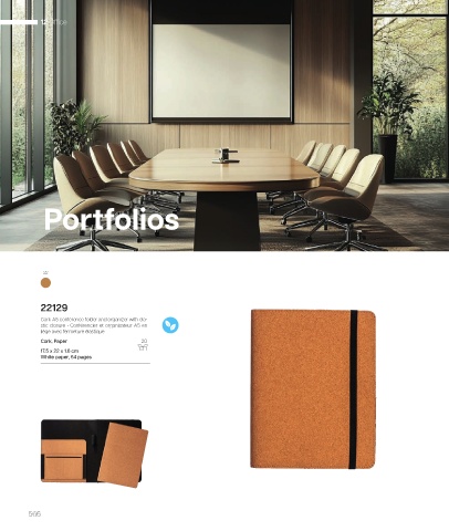 12 Office Portfolios 22 22129 Cork A5 conference folder and organizer with ela- stic closure • Conférencier et organisateur A5 en liège avec fermeture élastique Cork, Paper 20 17.5 x 22 x 1.6 cm White paper, 64 pages 566