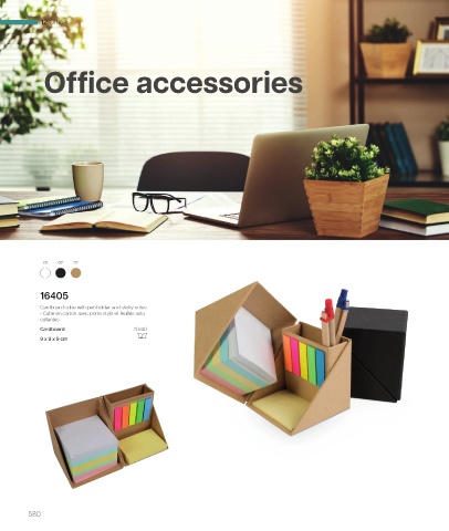 12 Office Office accessories 01 02 22 16405 Cardboard cube with pen holder and sticky notes • Cube en carton avec porte-stylo et feuilles auto- collantes Cardboard 20/40 9 x 9 x 9 cm 580