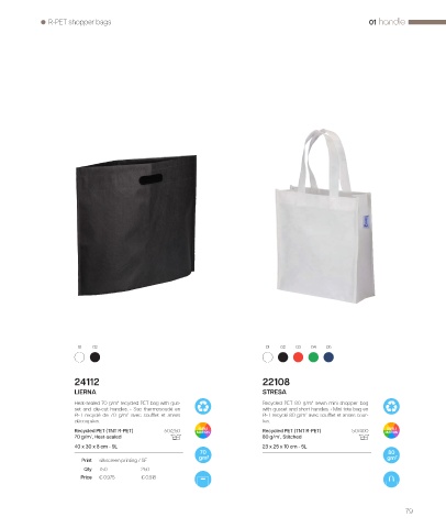 set and die-cut handles. • Sac thermosoudé en with gusset and short handles. • Mini tote bag en