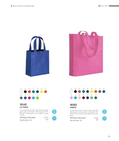 gusset and short handles. • Mini tote bag en TNT gm 2 with gusset and long handles. • Tote bag en TNT gm 2