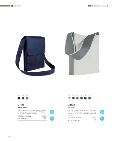strap and gusset. • Sac “havresac” en TNT 80 g/m² gm 2 TNT, with shoulder strap and gusset. • Tote bag gm 2