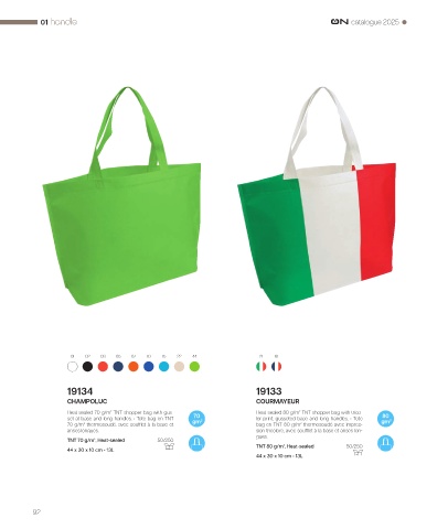 set at base and long handles. • Tote bag en TNT gm 2 lor print, gusseted base and long handles. • Tote gm 2