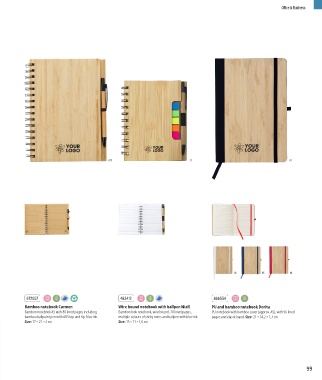 bamboo ballpoint pen with ABS top and tip. Blue ink. mulitple colours of sticky notes and ballpen with blue ink. pages and elastic band. Size: 21 × 14,2 × 1,3 cm