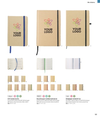 Recycled kraft notebook (A6) with 160 lined pages. Recycled carton notebook (A5) with 160 lined pages. Stonepaper notebook (approx. A5) with 80 lined pages,