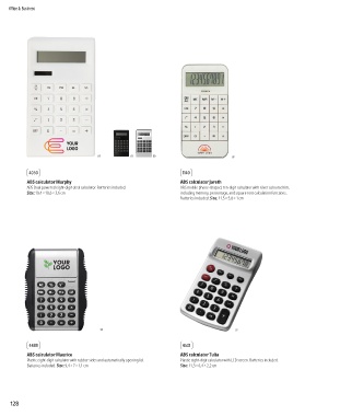 Plastic eight-digit calculator with rubber sides and automatically opening lid. Plastic eight-digit calculator with LCD screen. Batteries included.