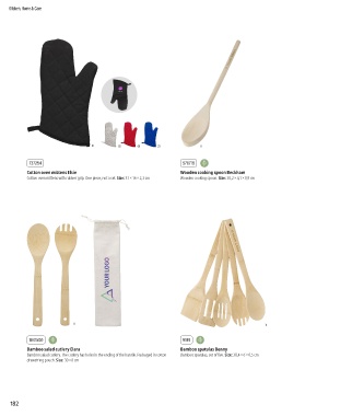 Cotton oven mittens with rubber grip. One piece, not a set. Size: 31 × 16 × 2,3 cm Wooden cooking spoon. Size: 30,2 × 4,1 × 0,9 cm