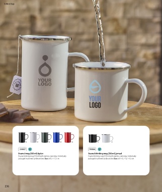 Enamel drinking mug (550 ml) with stainless steel edge. Individually Enamel drinking mug (350 ml) with stainless steel edge. Individually