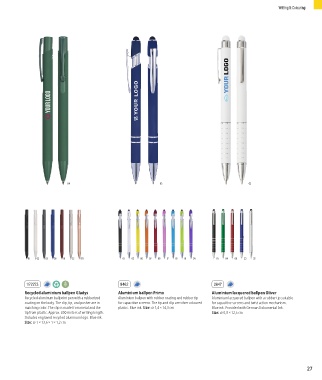 coating on the body. The clip, tip, and pusher are in for capacitive screens. The tip and clip are silver coloured for capacitive screens and twist action mechanism.