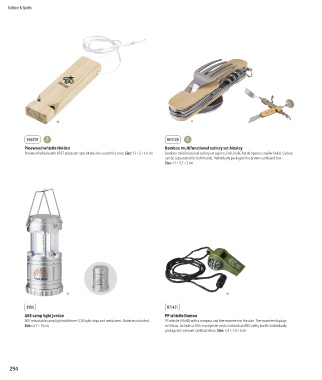 ABS retractable camp light with three COB light strips and metal arms. Batteries included. PP whistle (90 dB) with a compass and thermometer on the side. Thermometer displays