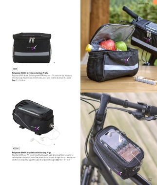 Polyester (600D) bicycle cooler bag with PEVA lining and a PVC pocket on top. Includes a