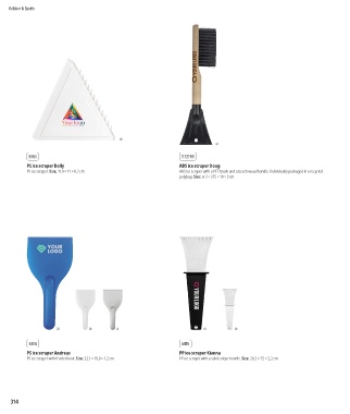 PS ice scraper with frosted look. Size: 22,1 × 10,8 × 1,2 cm PP ice scraper with a solid colour handle. Size: 20,2 × 7,5 × 2,2 cm