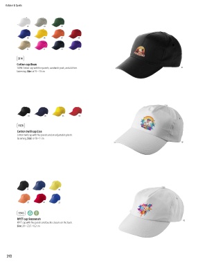 100% Cotton cap with five panels, sandwich peak, and a Velcro 01 05