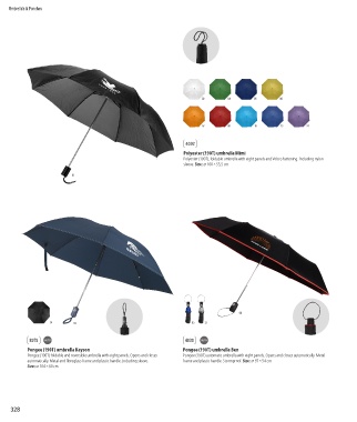 Polyester (190T), foldable umbrella with eight panels and Velcro fastening. Including nylon