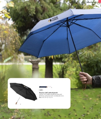 Polyester (190T) foldable umbrella with eight panels.