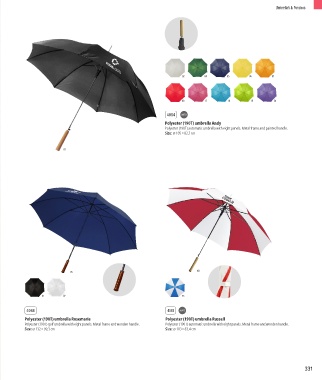 Polyester (190T) golf umbrella with eight panels. Metal frame and wooden handle. Polyester (190T) automatic umbrella with eight panels. Metal frame and wooden handle.
