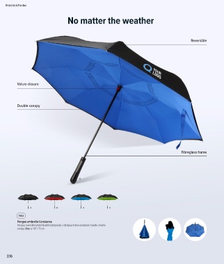 Pongee, reversible umbrella with eight panels. Fibreglass frame and plastic handle. Double